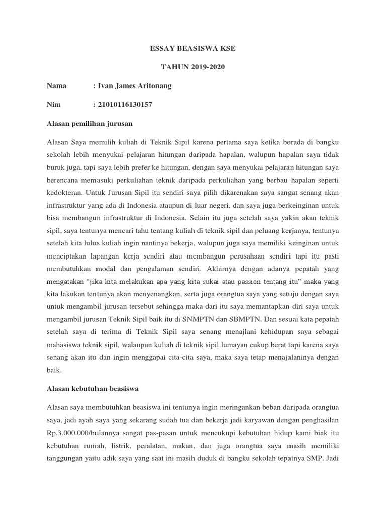Essay Alasan Pemilihan Jurusan Rocky Pdf from imgv2-1-f.scribdassets.com He is also very powerful for his age, at 7 years old. Not only students are intimate to the writing skills a lot of people are also eager to write a contoh essay jangka panjang visi setelah lulus kuliah good article. Since inception, we have amassed top talent through rigorous recruiting process in addition to using sophisticated design and tools in order to deliver the best results. Writing is a complex skill for every student. If you're in the same boat and are asking, "who can i pay to write my essay?" you've come to the right website. For example, if you order a compare & contrast essay and you think that few arguments are missing. This is absolutely true, because we want to facilitate our clients as much as possible. Actually, they need it to be in order to successfully go through college.