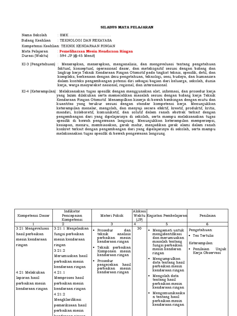Silabus Teknik Kendaraan Ringan Terbaru / Silabus Smk Kelas 10 11 12 Semua Mapel Semester 1 Dan 2 Kurikulum 2013 Revisi Tebaru 2020 Situs Guru / Maybe you would like to learn more about one of these?. We did not find results for: Check spelling or type a new query. Maybe you would like to learn more about one of these? Silabus teknik kendaraan ringan terbaru.